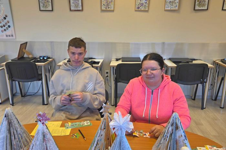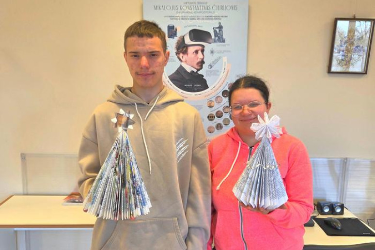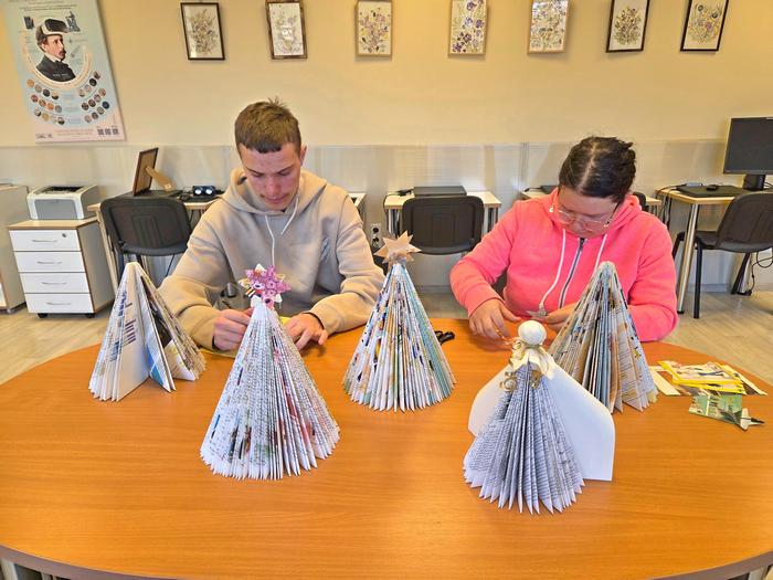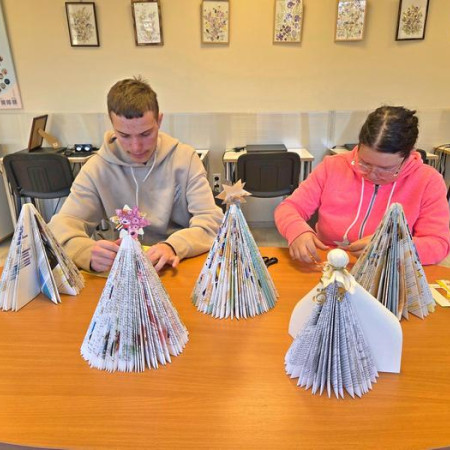Artėjant gražiausioms metų šventėms V-25/3S gr. mokiniai kartu su mokyklos bibliotekininke Romualda "pasinėrė" į kūrybinę veiklą. Mokiniai kūrė kalėdines dekoracijas - eglutes, kurios papuošė bibliotekos erdves.