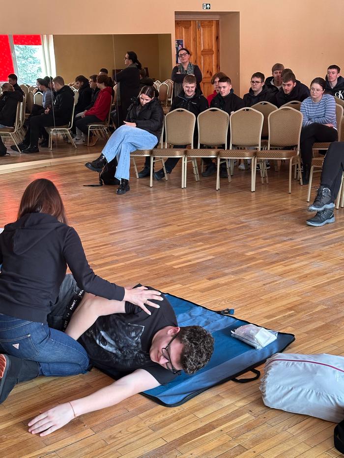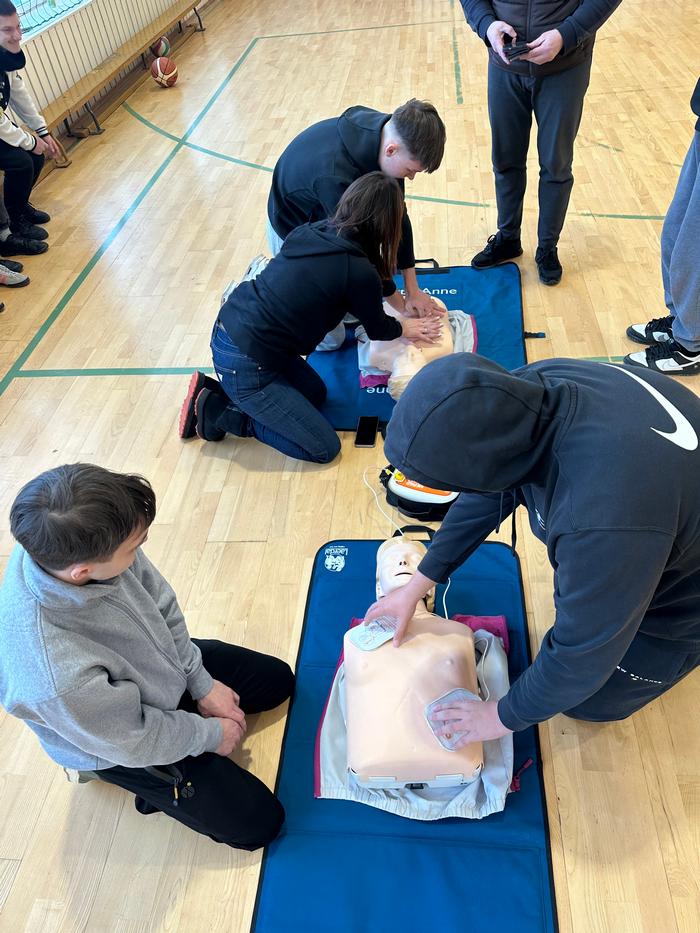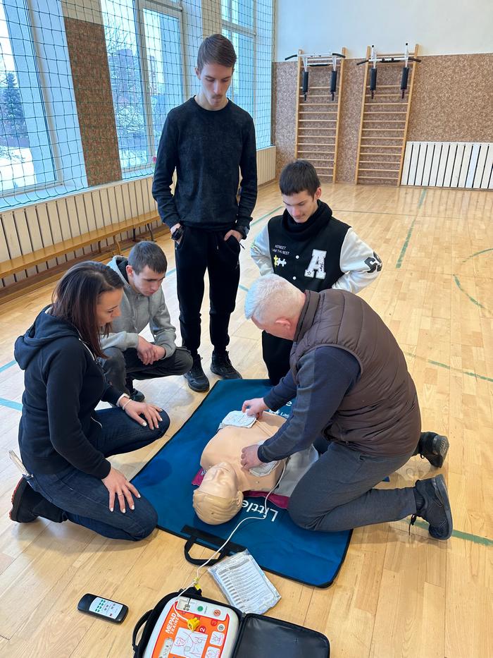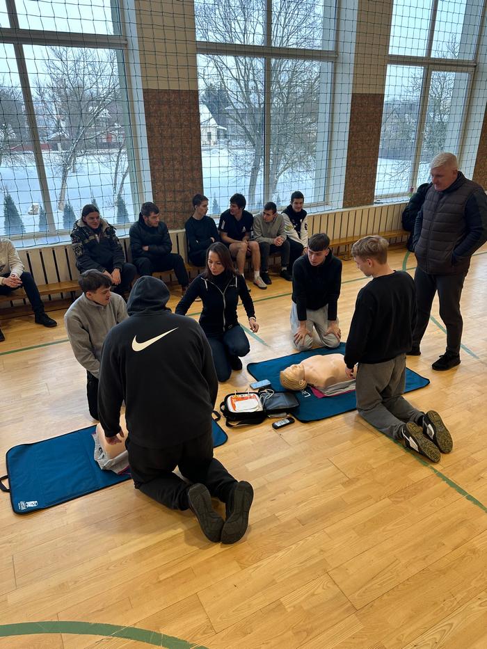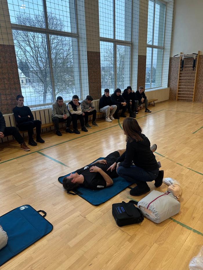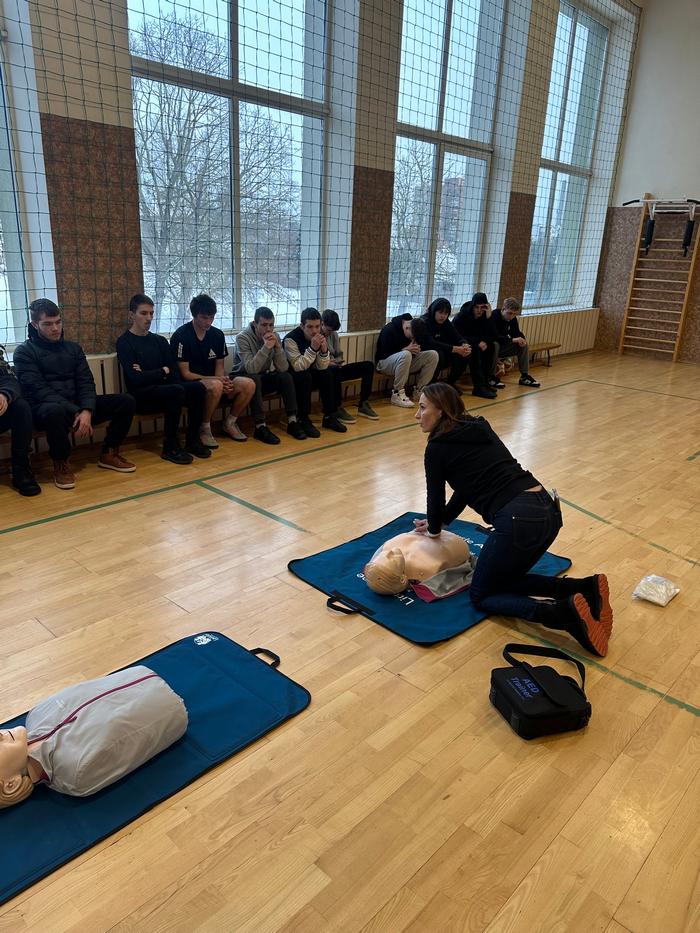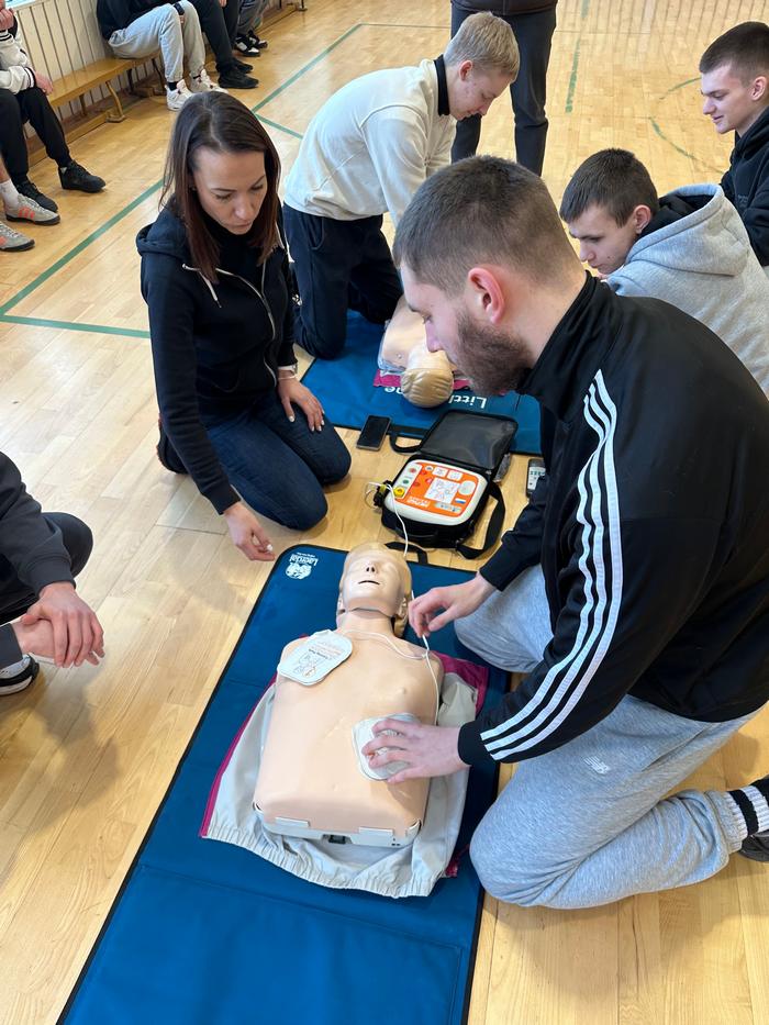 Mūsų mokykloje vyko pirmosios pagalbos ir gaivinimo mokymai mokiniams. Užsiėmimų metu mokiniai praktiškai susipažino su pagrindiniais pirmosios pagalbos veiksmais, mokėsi, kaip atlikti pradinį gaivinimą bei kaip naudoti automatinį išorinį defibriliatorių (AED).