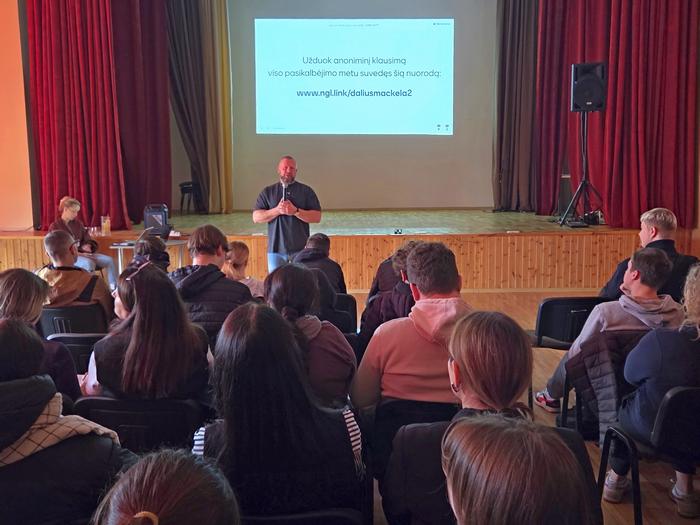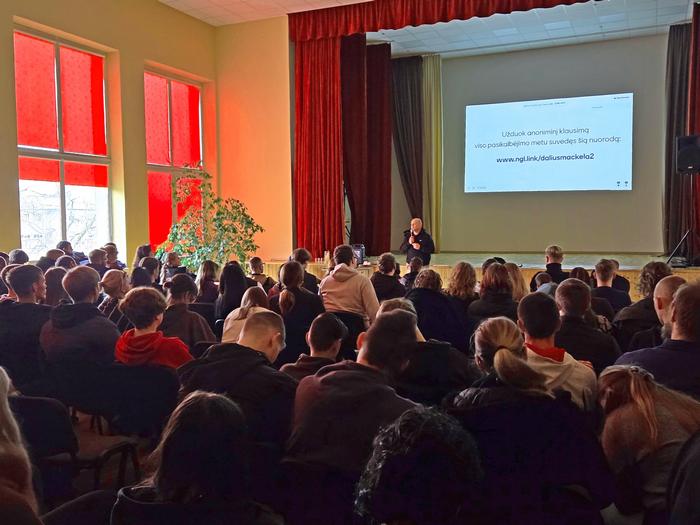 Lapkričio 21 d. mokyklos mokiniams vyko labai įdomi, interaktyvi ir įtraukianti mokinius prevencinė paskaita su Daliumi Mackela ir jo komanda. Autentiškos dalyvių gyvenimo patirtys skatino mokinius reflektuoti psichoaktyviųjų medžiagų ir priklausomybių temomis, rinktis sveiką gyvenimo būdą