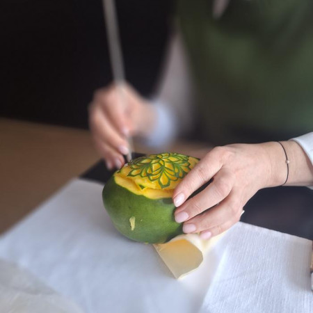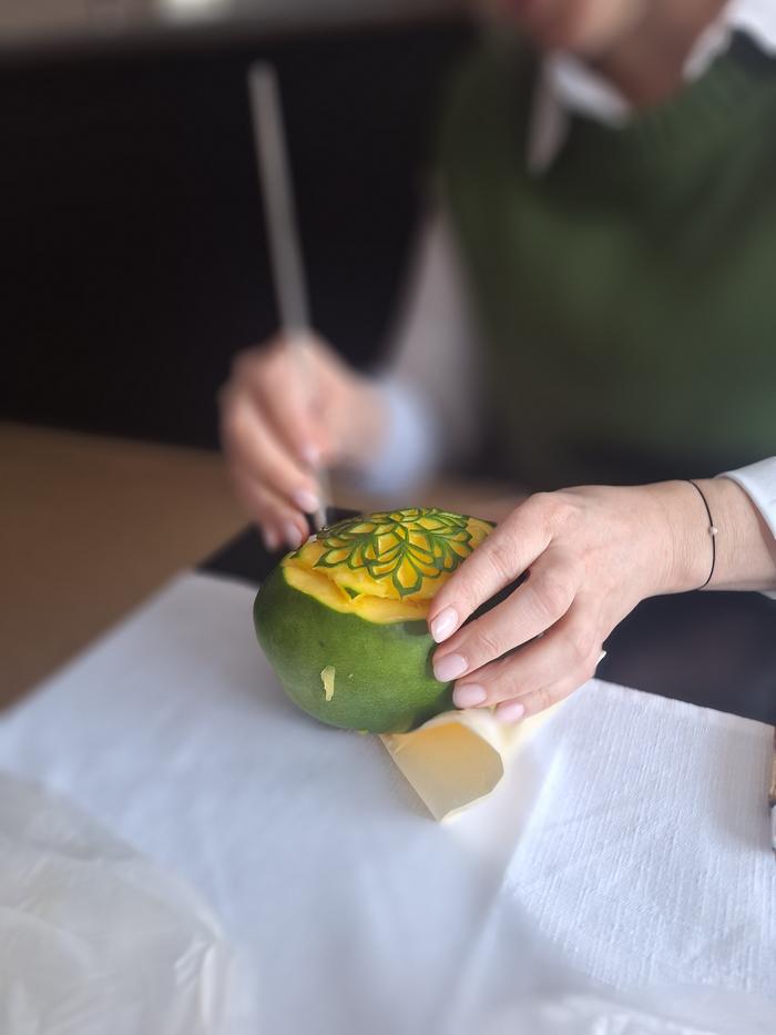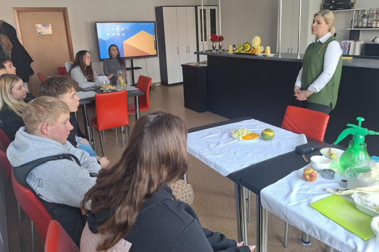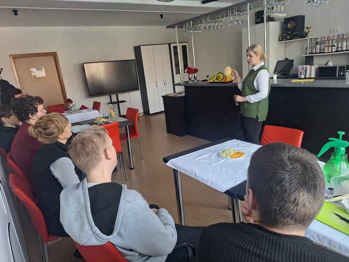 Didelio susidomėjimo sulaukė ir vaisių bei daržovių drožinėjimo demonstracija. Mokiniai pamatė, kaip iš vaisių galima išdrožti įvairias dekoracijas, kurios papuošia patiekalus ir suteikia jiems išskirtinumo.